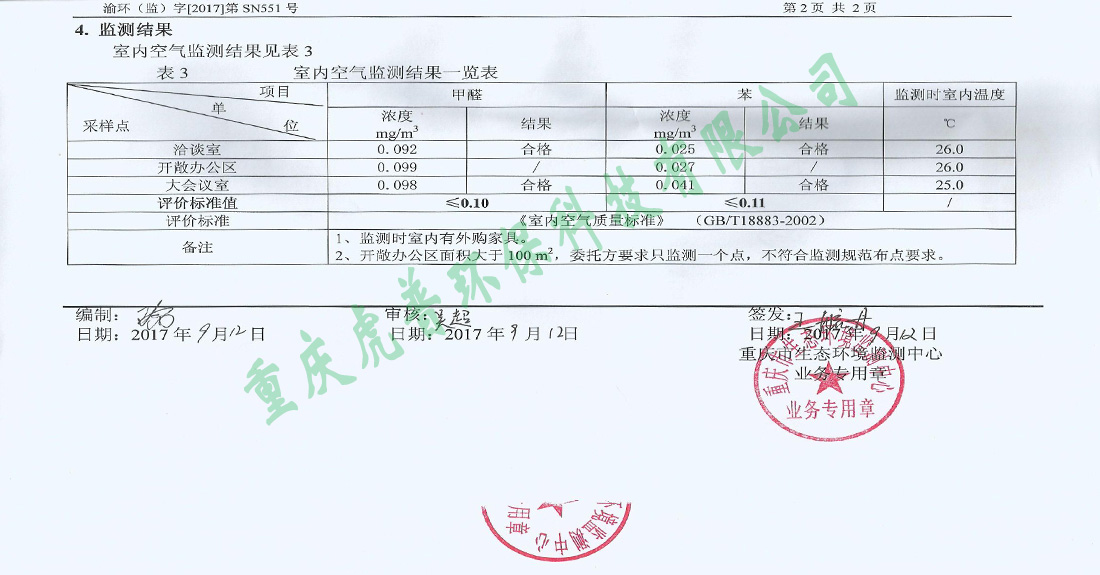 质量保障:除甲醛工程完工后,甲醛、苯、甲苯、二甲苯、氨、TVOC均达到国家标准,一次甲醛治理,甲醛、苯等永不反弹,并承诺15年质保,定期为甲方提供甲醛检测服务;