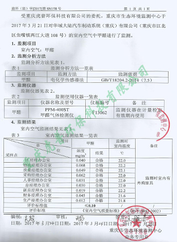 室内污染程度:平均甲醛检测超标130%倍,平均苯检测超标60%倍,平均TVOC检测超标110%倍